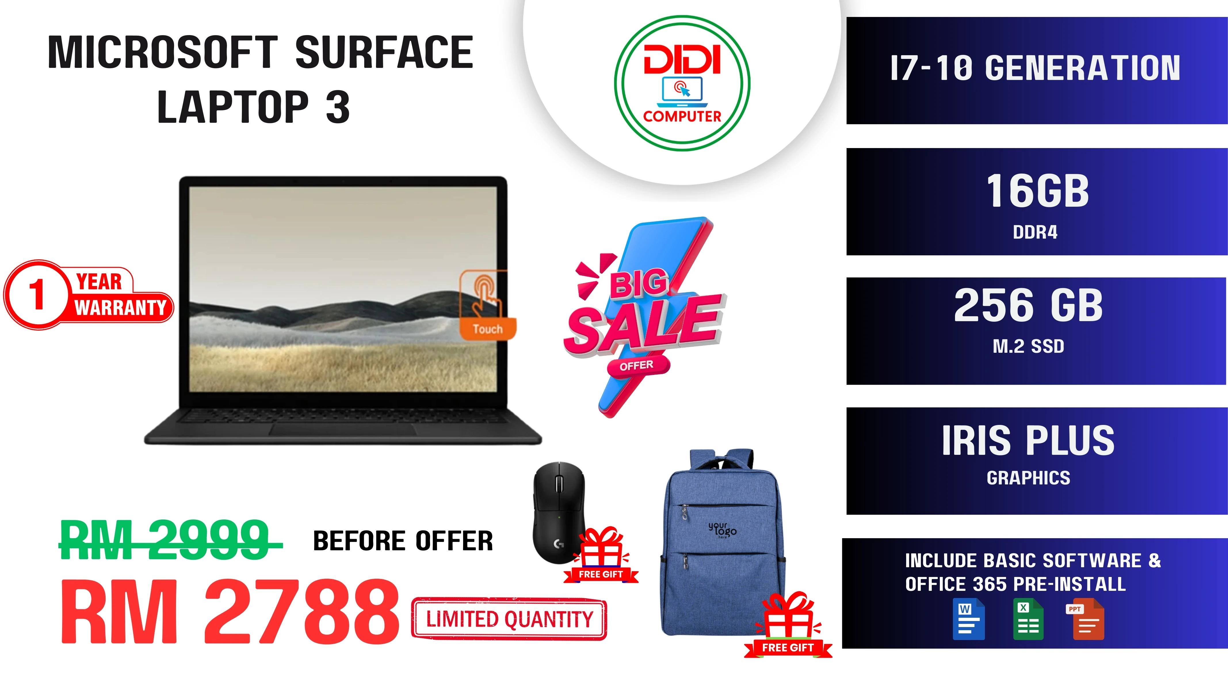 Microsoft Surface Laptop 3 Laptop MODEL 1868 VEF-00037 (Intel Core i7-1065G7/ 16